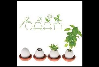 Eggling (54 mm x 47,5 mm) viene con una bandeja de terracota y con un paquete de semillas adicional para asegurar el éxito. Hay ocho “versiones” disponibles: cuatro hierbas (albahaca, perejil italiano, menta, tomillo) y cuatro flores (crisantemo, lobelia, polemonio, petunia).