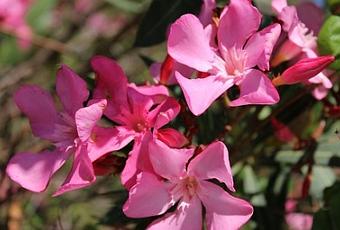 Es probable que muchos de vosotros penséis "¿la adelfa? con la de flores bonitas que hay que empiezan por la letra A"... pero veréis el motivo de elegirla es doble, por una parte, aunque tengo jardín y me gustan mucho las flores, mi cultura botánica no es muy amplia, y no conozco muchos nombres de plantas. Y por otra parte, esta planta nos gusta mucho a Juan y a mí porque pensamos que está un poco infravalorada, sobre todo desde que se comenzó a plantar en las medianeras y los márgenes de las carreteras. Yo creo que esto ha hecho que nos hayamos acostumbrado a verla creciendo de manera "salvaje" y en ocasiones sucia por la contaminación o el humo de los coches, y no la apreciemos en toda su hermosura, que es mucha en realidad.Bueno, paso a hablar de ella...La adelfa es también conocida como baladre, laurel de flor o trinitaria. Crece en forma de árbol o arbusto de hasta seis metros de altura. Las hojas de la adelfa son linear-lanceoladas o estrechamente elípticas, opuestas y verticiladas en número de 3 ó 4, con los nervios marcados. La flor suele ser rosa, rojo, fucsia, y rara vez, blanca, salmón y amarillo pálido. También hay una especie de hojas variegadas verde-amarillas y una subespecie enana.Es una planta muy venenosa y totalmente desaconsejada para uso particular, pues en dosis pequeñas puede tener un fuerte efecto sobre el corazón, por lo que en España su venta al público está prohibida debido a su toxicidad, y su uso y comercialización se restringe a la elaboración de especialidades farmaceúticas, según he leído.Gracias a su bonita flor, es una especie muy cultivada en los jardines y, como he dicho antes, en las medianeras de carreteras. Es una planta muy resistente a la sequía. Si se cultiva al aire libre sobre el suelo, suele tener bastante con el agua de lluvia. Si la cultivamos en maceta, la mejor manera para regarla es colocándo debajo un recipiente con agua y dejar que sea ella la que absorba la cantidad que necesite. Y con toda esta información, espero haber contribuido a que la adelfa sea un poco más admirada, reconocida y valorada en toda su belleza. Lo que sí que es cierto es que debemos agradecerle que nos alegre los monótonos y a veces aburridos viajes en coche.