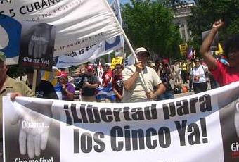 La acción, una de las que más ha concitado la atención de la jornada solidaria en Washington DC, pretende captar el interés de la opinión pública estadounidense sobre un caso que tiene un fuerte componente político, consideró el Comité Internacional por la Libertad de los Cinco, organizador de la cita.