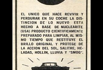 En la publicidad del Carnu de Ceras Johnson aparece claramente la trompa de un Ford Falcon. Esto no era habitual en un producto determinado que se usara en automóviles. En general el automóvil no era reconocible, o al menos su marca no era visible. La publicidad que les menciono la pueden ver en este enlace, de la sección “Accesorios y algo más” de los fines de semana: http://archivodeautos.blogspot.com.ar/2017/03/un-lustrador-de-pintura.html