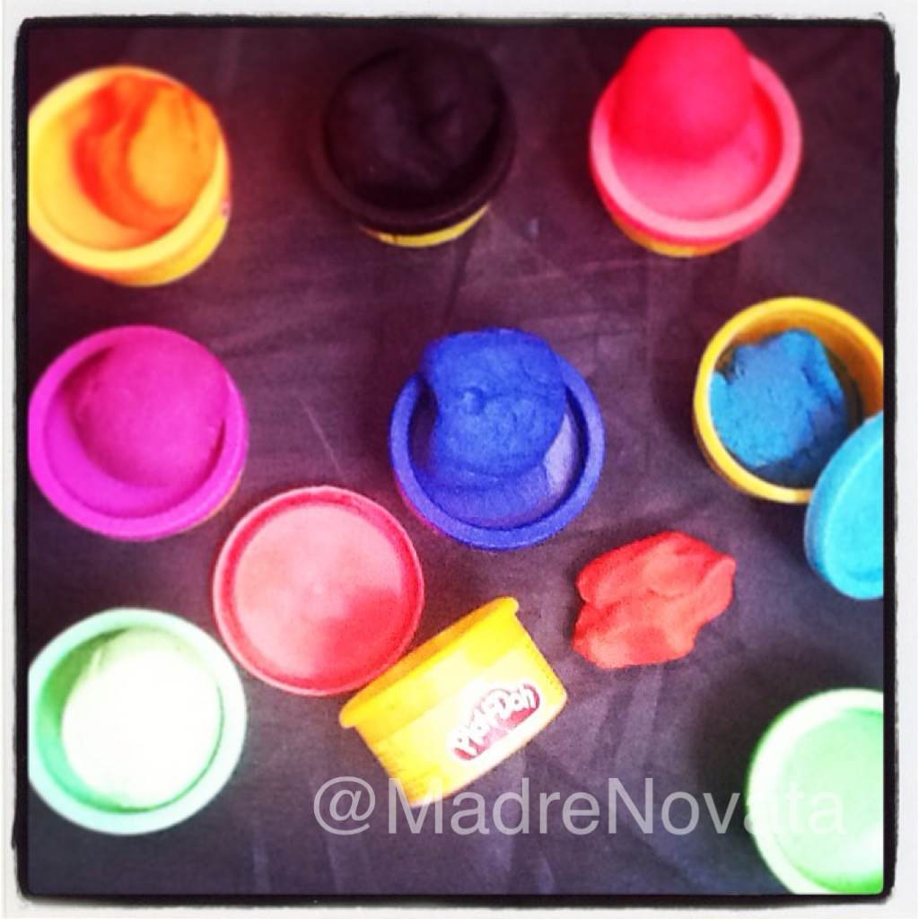 También las saco todas de sus botes o tarros y las va colocando cada una en su lugar ya que la tapa de las plastilinas Play-Doh vienen del mismo color, esto lo hace rápido y perfecto.Hacen días inicie una búsqueda en Internet sobre los beneficios de jugar con plastilina y me encontré con una gran variedad:- Modelando desarrollan la motricidad fina, trabajando con sus manos.
