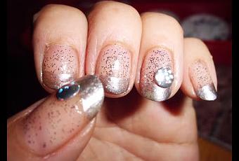 El paso a paso de esta manicura es:- Una capa de glitter.