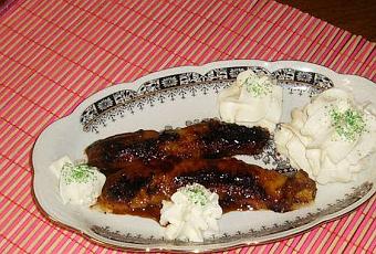 Partimos los plátanos en dos a lo largo y los dejamos que se vallan friendo en la mantequilla.