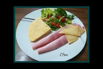 -1 trozo de tortilla de paatata (RECETA)-2 lonchas de jamón de york-3 cuñas de queso curado-1 cogollo de Tudela-5 tomates cherrys-Aceite de oliva-Vinagre rojo-Sal