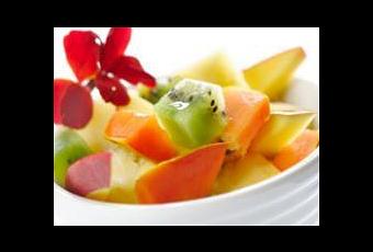 Distribuye la piña, papaya, mango y fresas en un plato de servir.