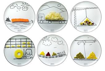Se trata de una divertida colección de platos que de alguna manera interactúan a la hora de comer, haciendo de ella una experiencia mucho más divertida y amena.