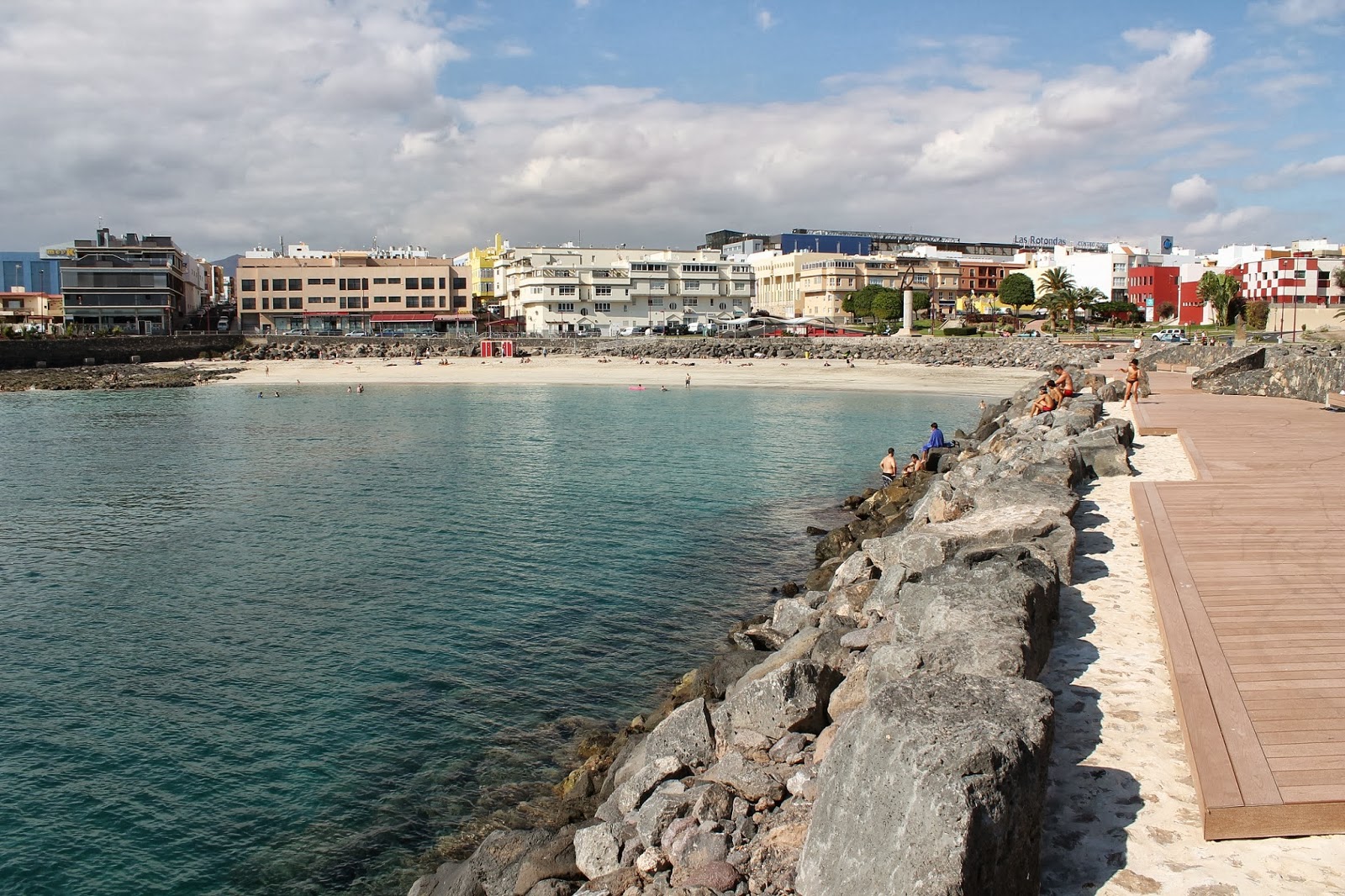 Buenos días a tod@s, ya se marcha otra semana, por fin Viernes!!! "Playa Chica o Playa de Los Pozos"Es una playa urbana en la avenida marítima de Puerto del Rosario (Fuerteventura), concretamente se extiende por el "Paseo de los Demócratas" inaugurado en 2012 en la capital majorera. El nombre de "Playa Chica", hace referencia a su tamaño, con algo más de 130 metros y una anchura que oscila entre los 8 y 12m. se queda pequeña y estrecha para todos sus visitantes sobre todo en el verano y los días que el calor azota la isla. En un futuro se pretende ampliar la playa, depositando más arena de manera que se consiga alargar la playa. Las rocas hacen que no sea un lugar fácilmente accesible, pero esto supondría alterar el ecosistema natural de la playa, con lo cual se están estudiando diversos proyectos que finalmente no supongan un gran impacto para el medio ambiente.