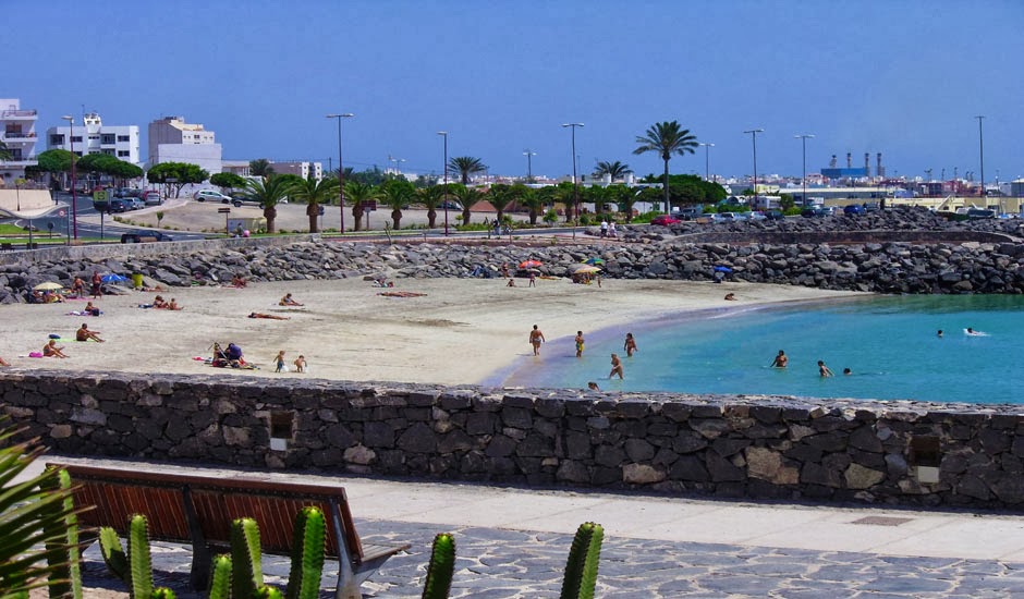 Es una playa regenerada, puesto que debido a la construcción del muelle pesquero y comercial, se delimito el flujo de arena hacia la playa, haciendo que esta se fuese degradando poco a poco y se quedará prácticamente solo en rocas y lajas. La generación la llevó a cabo mediante la construcción de una escollera de 167 metros de largo que protegerá la arena depositada dragada en la bahía de Puerto del Rosario, y que es la que le da el aspecto actual a la playa.