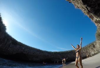 Al otro lado de México, sobre el Pacífico, mas precisamente en Nayarit se encuentra una de las playas más increíbles del mundo, si, del mundo. Es quea solo 45 minutos de lancha rápida desde Puerto Vallarta (uno de los lugares más comunes de salida) o a menor distancia pero con menos frecuencias desde Punta Mita podemos hacer realidad el sueño de conocer una playa “secreta”. En realidad esta playa se llama “Playa Escondida” y es parte de las Islas Marietas. Estas islas de origen volcánico (Isla Gorda e Isla Larga), están deshabitadas, tienen varias particularidades que las hacen especiales. Antes que nada son un área protegida lo que hace el snorkel y el buceo aquí algo único, con aguas transparentes y cálidas y rocas que caen en paredes verticales hasta gran profundidad. Sus corales son el escenario perfecto para todo tipo de peces y crustáceos (muchos de ellos endémicos y solo presentes en el Océano Pacífico), además son un santuario para las aves y eso explica la súper población presente con variedades que no veras en otros lados, para continuar con sus “destaques” está el hecho de que increíblemente estas islas fueron durante mucho tiempo sitio de prácticas de tiro de la Armada Mexicana, lo que destruyo buena parte de su ecosistema y le costó un pedazo a Isla Larga. Finalmente, las hizo famosas a nivel mundial el célebre Oceanógrafo Jacques Costeau y como ya dije se encuentra aquí Playa Escondida.