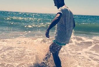 Today, walking and look on the beach with a t-shit navy and a green swimwear. I hope you like it!