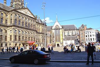 Lo que en otros países seria "Plaza de Armas", aquí en Amsterdam es "de Dam".Entre los años 1204 y 1275 el dam era una represa para contener las aguas del río Amstel y que con el correr de los años el "Amstel Dam" cambió a Amsterdam de ahí el nombre de la ciudad.