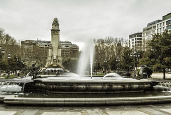 Se instala en Plaza España en 1969. Fueron dos artistas los que intervinieron en su creación. Manuel Herreros Palacio se encargó de la parte arquitectónica y Antonio Campillo fue el escultor de las ninfas.