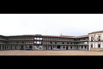 Las ornamentaciones realizadas en yeso representan cruces de la Orden de San Juan de Jerusalén, como tributo a su tutela medieval. Diseñada para cumplir una doble función, la pura urbanística y centro de la vida de la población y la de plaza de toros, por lo que los corredores en sus dos alturas superiores son abiertas. En uno de sus lados está el Ayuntamiento, construido en 1654; el acceso principal está cubierto por un voladizo coronado por un mirador a cuatro aguas.