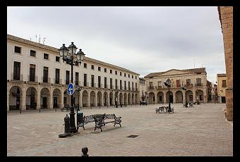Plaza Mayor de la Villa delimitada en su fachada oeste por la casa consistorial cuyo origen se remonta al siglo XVI, conservando tres arcos centrales del siglo XVIII.En sus orígenes fue una plaza gótica de planta triangular, formada por la Colegiata y Palacio Arzobispal en sus lados, y edificio administrativo en la base.
