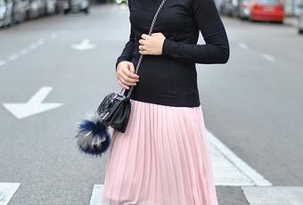 Después de este finde pasado por agua, en el que apenas hemos podido fotografiar looks, vuelve la rutina de cada semana, y con ella, nuevos posts, nuevos proyectos y algunas metas que me he propuesto cumplir antes de final de año y que espero que vean la luz muy pronto.Hoy quiero enseñaros el mix que se convertirá en mi aliado esta temporada de otoño invierno: jersey de cuello alto + falda midi + botas altas. La semana pasada ya os enseñaba un look en tonos negro y rosa pastel, y hoy os muestro otro, totalmente distinto, pero en la misma gama de colores, para que veáis que hay un sinfín de combinaciones posibles en vuestros armarios.He combinado una falda midi plisada con botas de ante y jersey de cuello cisne, y como remate final, uno de mis collares joya favoritos. ¿Qué os parece el resultado?Un besazo y feliz comienzo de semana! xx