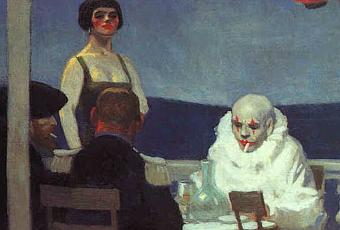 (Óleo Soir Bleu, 1914, Edward Hopper, Nueva York; Cuadro Dos cómicos, 1966, Edward Hopper, colección privada.)