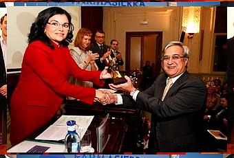 **En la imagen, Fernando Royo, presidente de Genzyme España, recoge el premio de manos de la presidenta del Consejo General de Farmacéuticos, Carmen Peña.