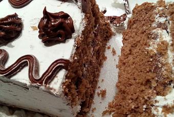 250 gr. de harina 00, 25 gr. de chocolate en polvo, 150 gr. de azúcar, 100 gr. de mantequilla, 2 huevos, 120 ml de leche, 1 sobre de levadura en polvo, 1 sobre de aroma vainilla, nata montada.