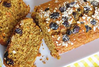 70 cc. de aceite de oliva virgen extra100 gr. de zanahoria70 gr. de copos de avena100 gr. de harina integral120 gr. de azúcar moreno1 c/c de canela molida7 gr. de levadura química o medio sobre2 c/s de pasasCopos de avena para poner encimaBatir bien el azúcar moreno con los huevos, unos 8-10 minutos.Incorporar el aceite, la zanahoria rallada y batirde nuevo.Mezclar los copos de avena, la harina, la levadura y la canela.Tamizar y añadir a la mezcla anterior.Mezclar hasta integrar.Forrar un molde alargado con una tira de papel de horno, que sobresalga por los dos lados, engrasar y enharinar todo el molde, verter la masa, dar ligeros golpes sobre la mesa de trabajo para que se asiente bien la masa.Repartir por encima las pasas previamente enharinadas y algunos copos deavena.Cocer en horno precalentado a 180 º durante unos 35-40 minutos.Dejar entibiar o enfriar antes de desmoldar. de avena en lugar de la integral. si está cocido, basta con introducir una brocheta de madera, si sale húmeda aun le falta cocción, si sale seca, ya está listo.**c/c= canela molida Ingredientes para 6 personas: