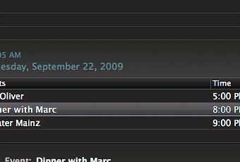 Puedes usar hasta tres vistas para ver solo la información necesaria en la pantalla de Pluto. La vista Hoy muestra todas tus citas y tareas para las próximas horas y permite además la creación de citas nuevas sin tener que abrir iCal. Especialmente interesante es la vista GTD que agrupa las tareas por contexto y/o proyecto.