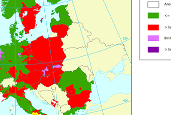 PM10: Mapa del valor límite diario para protección de la salud (Europa, 2010)[ Fuente: Agencia Europea de Medio Ambiente ]