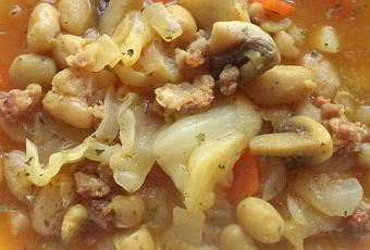 Cuando las verduras han cambiado de color le añadimos las alubias: