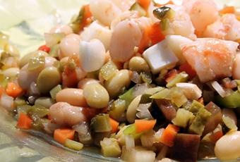 4 – Servir las pochas y que cada uno se sirva la cantidad de vinagreta al gusto, al igual que el huevo y los langostinos. Mezclar en el plato y ajustar de aceite y vinagre.