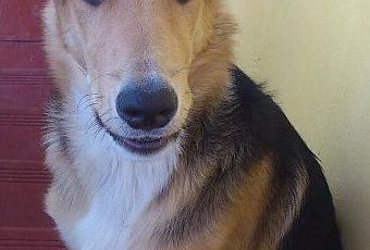 A este perrito lo han llamado POCHOLO. Tiene aproximadamente un año y lo recogieron en el mes de julio, después de meses rondando por el centro, en frente de la oficina de Correos.