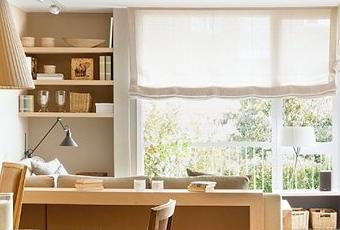 “Mi punto de partida fue un tabique de cristal: con él diseñé una cocina que se abre al comedor, deja pasar la luz y las vistas, pero se aísla cuando hace falta. El comedor y el estar solo se separan con un mueble bajo de madera clara. Y como división visual utilicé la pintura de las paredes: elegí un gris marrón y le di tres tonos distintos para el estar, el comedor y el recibidor”. La última clave del proyecto fue asegurar el orden: “Si quieres dar amplitud a un pisopequeño, es importante tener espacio para guardar. Todo son muebles a medida, estantes, armarios empotrados, cestas bajo las baldas… cada objeto tiene su lugar”