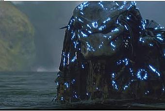 ---Predator en la escena de cuando sale del rio en la película de 1987, tomado de Mas Allá de Orión