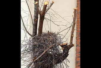 El bosque urbano se encuentra entre nosotros y disfruta de nuestra compañía pero también padece con nuestra actividad, lo mismo le ocurre a la fauna silvestre asociada al medio urbano. En las tareas habituales de mantenimiento de los parques y jardines, este olmo siberiano (Ulmus pumila) ha sido podado, pero los jardineros han demostrado sensibilidad ante la presencia de un nido de urracas, al que han respetado sin tirarlo.