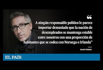 ¿Qué hay de los desempleados? Recuerda David Trueba la fecha del 31 de agosto de este año. "En solo esa jornada perdieron su empleo 315.000 personas. Esa fecha vergonzante de récord no conmovió a nadie, pese a que significa un zarpazo al proyecto de vida de una legión de familias, de esa gente que no despierta ni la empatía ni la emoción, ni la solidaridad ni el empeño de los gerentes de la pasta porque están ocupados en otras cosas mucho más significativas para los libros de Historia y su cromo".España todavía no está rota, pero su sociedad hace tiempo que sí lo está. ¿Podemos, de una puñetera vez, hablar de algo más que de banderas de uno y otro colorín? ¿Podemos hablar de las cosas de comer? De las pensiones, sin ir más lejos. Porque hay pensionistas cuya paga apenas si les llega para llenar la cesta de la compra.
