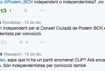 Pero quien de verdad fabrica"Caballos de Troya" para bombardear alternativas democráticas no es Podemos, sino el propio independentismo. Es decir, hay gente que no comparte el proyecto de Podemos y se alistan e intentan medrar en él sólo para escorar al partido hacia el independentismo. Son los independentistas los que se están infiltrando en Podemos y no al revés. Y pondré un ejemplo documentado.Jordi Pla es Portavoz del Círculo Podemos de Sants (Barcelona). Públicamente y a través de tuiter ha admitido que las CUP, y no Podemos, recoge su forma de pensar. ¿Y qué hace? ¿Apuntarse a las CUP? No, presentarse al Consejo Ciudadano de Podemos BCN para escorar a Podemos al máximo hacia opciones pro-independentistas.