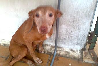 Esta es maya, una podenquita de 12 años que ha vivido toda su vida encerrada en una chabola de un cazador, que solo conoce comer mierdas y salir 2 dias a la semana a cazar, que la usen para criar una y otra vez y lo mas fuerte, tiene un bulto tipo hernia y una cicatriz, para cagarse que la