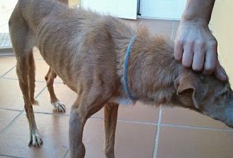 Muy urgente, podenca de 11 años rescatada de la autovía!! me acaban de dar el aviso unos amigos que han recogido a esta podenca de la autovía,necesita acogida urgente!!