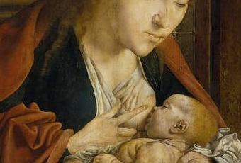 La madre perfecta, robusta y con una cara de dulzura que mira al niño entre telas y gotitas de pintura... vamos, como un cuadro de otra época.