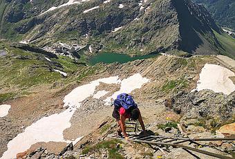 A partir de aquí comienza la subida al Grande Chenalette que lo haremos por una bonita y fácil ferrrata. Iremos todo el tiempo por la frontera entre Suiza e Italia.