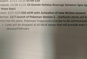 Al parecer en este escrito se comenta la llegada de Pokemon versión 2 y una promoción de un nuevo café para el 7 de diciembre. Lo que hace desconfiar es que no saben escribir ni si quiera bien la marca, así que habrá que ver que acaba ocurriendo.