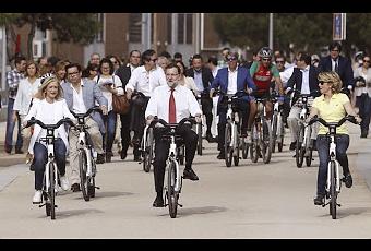 Por su parte, el presidente del Gobierno, como buen lector de Marca y entusiasta del ciclismo, insistió más en la faceta deportiva de la bicicleta que en la de transporte ciudadano. “Cuando termine esta legislatura con Aguirre y Cifuentes –alegó– en Madrid se hará más deporte, se usará más la bicicleta, el Medio Ambiente será mejor y la gente será más feliz”. Claro que, para ello, advirtió, hay que votar al PP, porque “el único riesgo para España es volver a las caducas y trasnochadas políticas socialistas”. Y siguió uno metros más pedaleando.