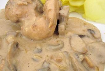 Pasado el tiempo añadimos los champiñones y la nata líquida. 5 min, 90º, giro izq, Veloc cuchara.