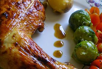 Horneamos de nuevo 20 minutos más a 170-180ºC, hasta que queden crujientes y dorados. Mientras tanto, ponemos la salsa sobrante a reducir a fuego bajo y si os gusta más el sabor dulce, añadirle 1 cuchara de miel.Servir los contramuslos bien calientes e impregnados de la salsa reducida, acompañado de un arroz con apio y pasas, ensalada o verduras y porqué no, con unas crujientes patatas fritas o arrugás como en la receta de hoy.