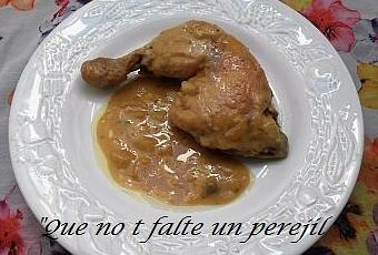 En un recipiente apto para microondas ( yo usé una fuente de cristal ) pon los muslos salpimentados, la cebolla picada muy menuda y vierte el aceite por encima.