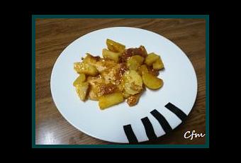 -Pechuga de pollo troceada- diente de ajo-1 cebolla -4 naranjas,-3 ó 4 patatas -Ralladura de naranja-Maízena-Aceite de oliva -Sal -Pimienta negra