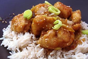 Mientras metemos el arroz en el micro durante un minuto. Servimos el pollo acompañado de arroz. Espolvoreamos el sésamo y unas rodajas de puerro fresco.
