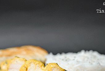 Mezclamos el yogur con las especias y marinamos el pollo en la mezcla durante 1 hora.