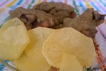 El vino tinto deja el guiso con un color un poco más feo, pero el sabor es muy bueno.