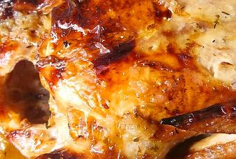 4.- Pasados unos 20-25 minutos, a media cocción, le damos la vuelta al pollo. Así se cocinará bien por ambos lados.