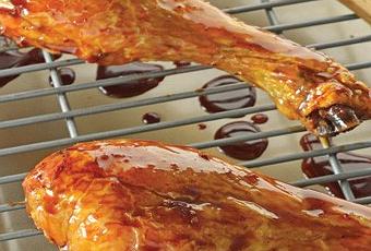 Ingredientes8 piernas de pollo limpias y con piel8 cucharadas de soya2 cucharadas de mermelada de durazno4 cucharadas de miel de abeja3 cucharadas de aceite de ajonjoliPreparación1. Mezcla todos los ingredientes líquidos en un tazón grande. Agrega las piernas de pollo. Incorpora bien y marina por 2 horas.2. Hornea en una rejilla con una charola por 10 minutos. Cuida que la temperatura esté por debajo de los 200 oC.3. Barniza nuevamente con la salsa que haya caído a la charola antes de servir.Visita nuestro blog: http://recetacomidas.blogspot.com.ar