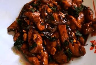 Calorías: 290 por raciónPreparación: 15 minCoccion: 15 minIngredientes: 200 gr de pechuga de pollo 50 gr de anacardos cebollino 1 guindilla cilantro 1 cucharada de azúcar media cebolla 1 cucharada y media de salsa de soja aceite de oliva pimienta salProcedimiento: