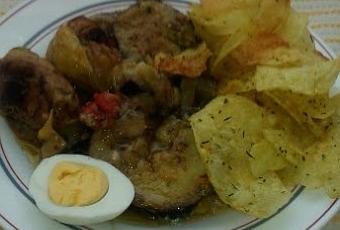 Esta semana santa he preparado una serie de platos, de mi libro mágico como yo le llamo he querido probar el pollo con berenjenas. Y la verdad exquisito y el libro por supuesto es corpus del patrimoni culinari catalá.INGREDIENTES:1 pollo troceado3 berenjenas2 cebollas2 tomates madurosSalAgua o coñac yo le añadí un chorrito de coñacPimienta negraUna cucharada sopera de manteca de cerdoUn chorrito de aceite de olivaUna rama de canela2 huevos duros para terminar el platoUnas patatas selectas de trufa negra http://www.patatastorres.com/ PARA LA PICADA:Un puñado de almendras o avellanas4 ajitosPerejilELABORACIÓN:Poner en una cazuela la manteca de cerdo y el aceite, y añadiremos el pollo salpimentado hasta que este. Un poco doradito en la misma cazuela añadiremos la cebolla picadita y el tomate, cuando el sofrito tenga color añadiremos el agua y lo dejaremos cocer todo junto hasta que el pollo este blando. Mientras tanto cortaremos las berenjenas a círculos anchitos las salaremos y las dejaremos que escuran. Una vez escurridas las pasaremos por harina y las freiremos. Al final de la cocción del pollo añadiremos las berenjenas y la picada y dejaremos que cueza unos cuantos minutos.SUGERENCIAS Se le puede añadir coñac yo se lo añadí también se le puede añadir una rama de canela, también se le puede añadir a la salsa un poquitín de harina para espesar la salsa y o también la espese un poco y por ultimo unos huevos duros.